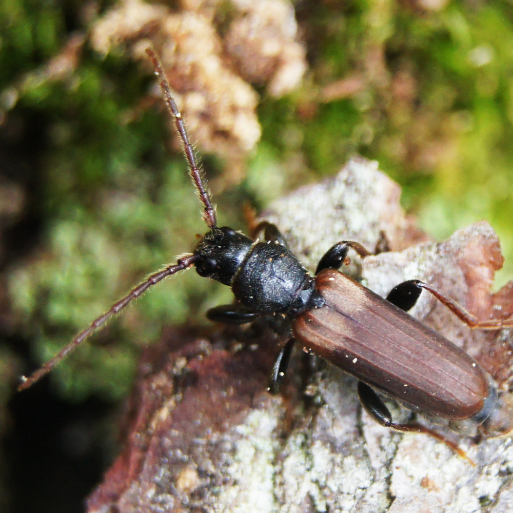 | 配套誘捕器 | 天牛誘捕器 | 昆蟲信息 | 暗褐?jǐn)嘌厶炫#?/span>Tetropium fuscum)成蟲體長8-17mm,黑色,鞘翅淡褐色帶紅棕色。體色變異大,生活于平原地區(qū)通常體色淡,生活于高山區(qū)體色暗。頭部中央有1條深縱溝,起始于觸角基瘤之間,向后伸達(dá)后頭后緣。觸角較粗。雄蟲觸角較長,約達(dá)鞘翅中部,雌蟲觸角不達(dá)翅中部。前胸背板兩側(cè)圓弧形,中區(qū)暗淡無光,中區(qū)基部刻點(diǎn)密,有皺紋刻點(diǎn)。鞘翅中度隆起,兩側(cè)平行,末端寬圓,基部有1條寬的淡色橫毛帶。前胸背板和鞘翅上的毛較長且密。腿節(jié)強(qiáng)烈膨大,后足第1跗節(jié)長。 暗褐?jǐn)嘌厶炫4瞥上x產(chǎn)卵于活立木或新伐倒木的樹皮里,平均產(chǎn)卵80粒,一般單產(chǎn),有時也成串,可多達(dá)10粒。卵期10-14天,幼蟲孵化后即蛀入韌皮部,蛀道不規(guī)則,其中充滿蛀屑(蟲糞)。約60天左右,幼蟲體長可達(dá)1.5-2.5cm,之后蛀入邊材2-4cm深,然后沿樹干平行方向形成3-4cm深的蛀道,整個蛀道呈“L”狀,最后做室化蛹。蛹期約14日,成蟲羽化后,咬一個4-6mm的圓形羽化孔飛出。成蟲壽命約20天,主要在6-8月份出現(xiàn)。雌雄成蟲飛翔力強(qiáng)。初齡幼蟲根據(jù)環(huán)境情況在樹皮下或在4cm深的木質(zhì)部越冬。在歐洲,該蟲每年發(fā)生1代,但在較寒冷地區(qū),或因樹木營養(yǎng)缺乏時則需2年完成1代。