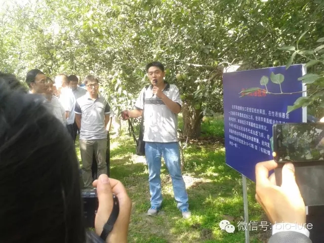 8月31日下午,與會代表先后到西峰鄉(xiāng)官北溝村、丁家壩園藝場觀摩蘋果蠹蛾為害現(xiàn)場和監(jiān)測防控現(xiàn)場。北京中捷四方的蘋果蠹蛾監(jiān)測誘捕器和迷向技術(shù)吸引了參會代表的目光,卓越的產(chǎn)品效果給大家留下了深刻的印象。